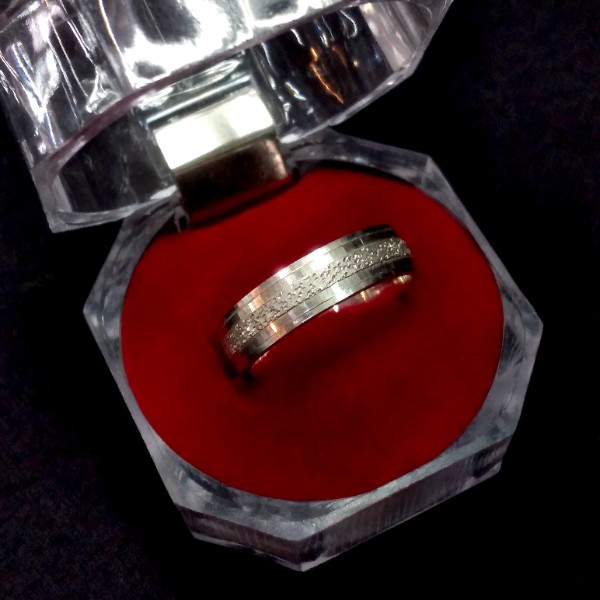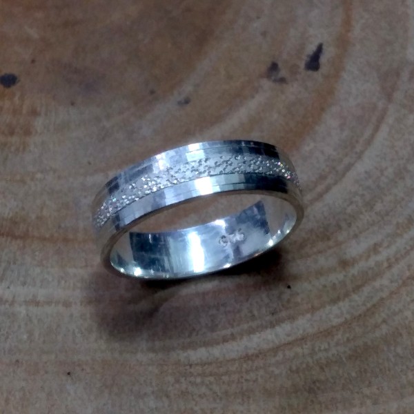Cincin ekslusif elegan ini dibuat dengan motif pasiran/doff dengan alat khusus.
